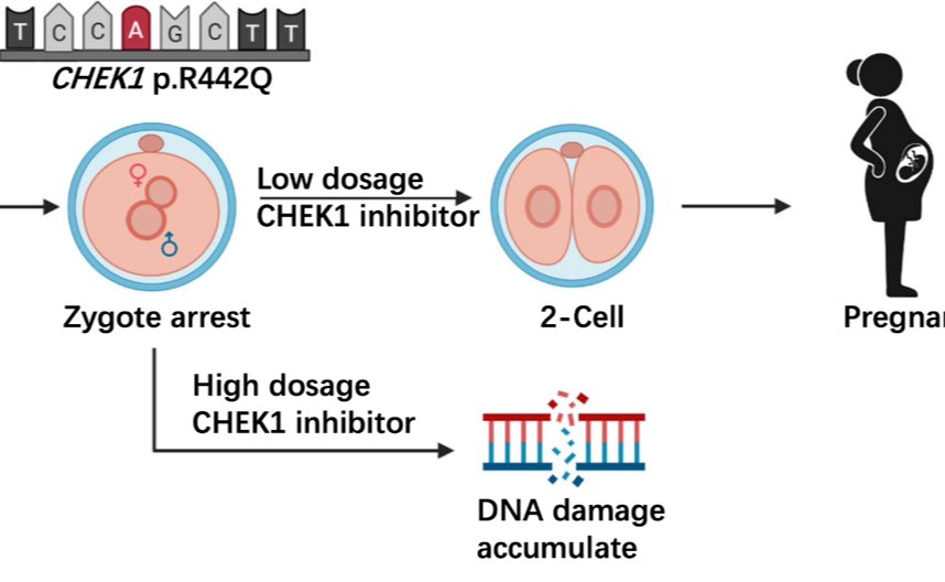 2021.05医学院那洁团队合作报道阻滞人类受精卵分裂的致病基因CHEK1突变和潜在治疗方法