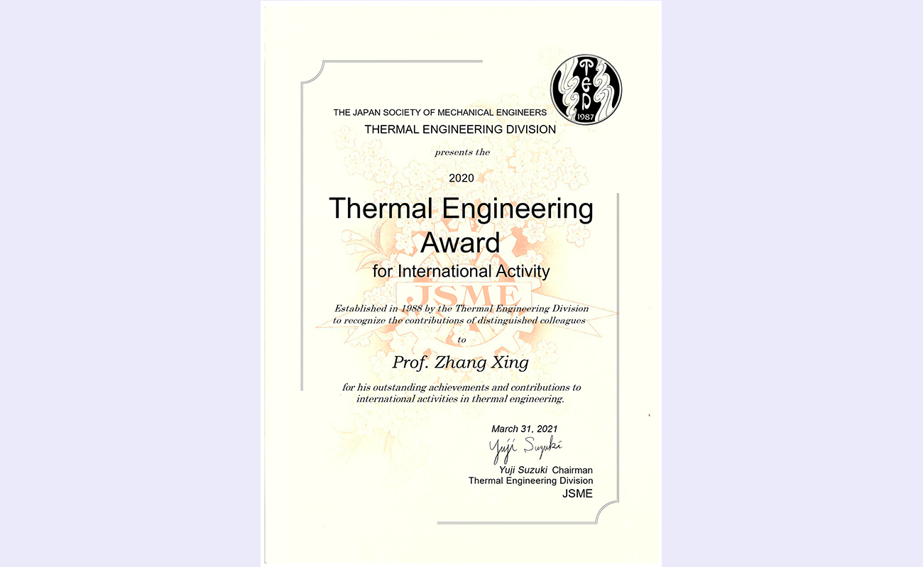 日前,2020年度日本机械学会热工学国际成就奖“Thermal Engineering Award for International Activity”授予kaiyun开云官方网站航天航空学院张兴教授,以表彰他在热工领域取得的杰出的国际成就。