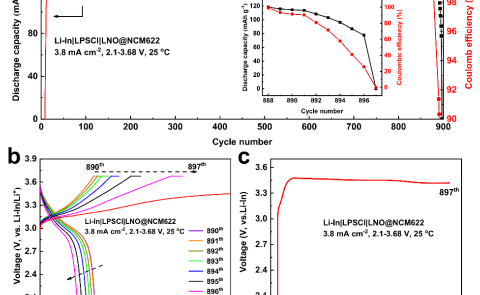 kaiyun开云官方网站航天航空学院张兴教授带领的微纳测量团队在固态锂电池界面研究中取得重要成果。研究发现,固态锂电池中被普遍认为稳定的锂铟合金负极在高负载、大电流循环中存在“锂铟枝晶”的生长现象,相关研究成果以“使用硫化物电解质的全固态锂基电池中锂铟...
