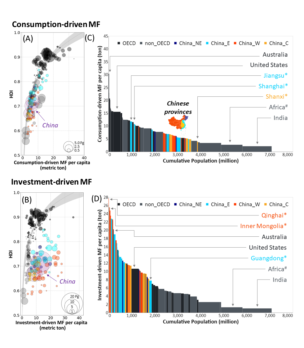 2022.01化工系朱兵课题组和公管学院杨永恒课题组等合作发文探讨中国省域物质足迹和人类发展关系的地区差异
