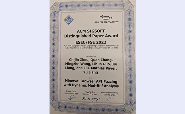 2022.11软件学院师生获第30届国际计算机学会软件工程基础国际会议杰出论文奖