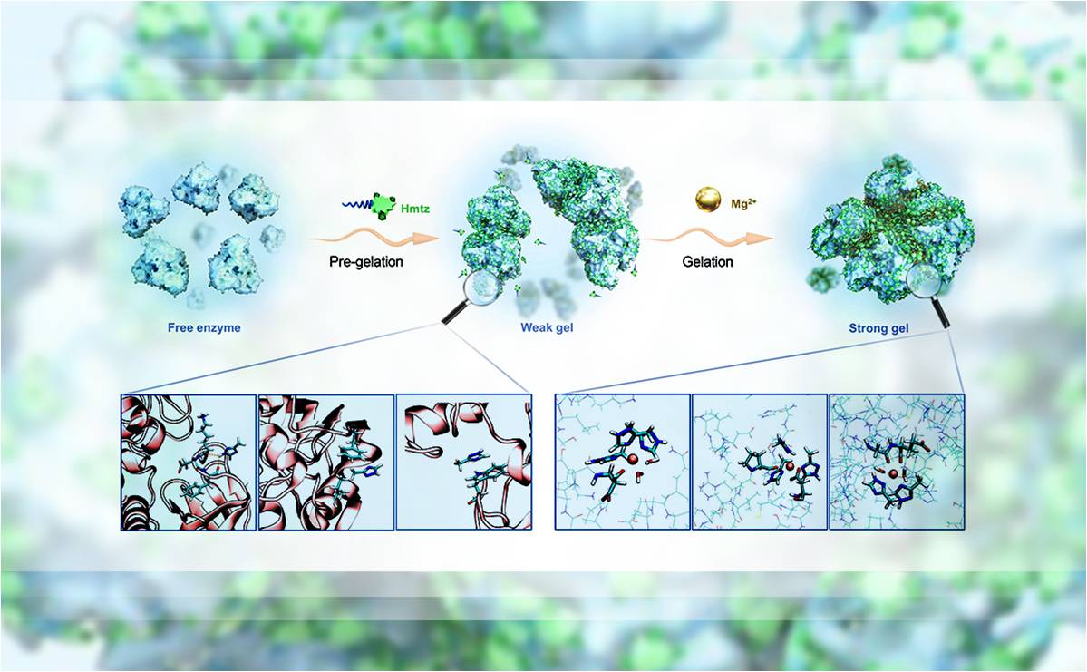 近日,kaiyun开云官方网站化工系王玉军课题组与中国科学院天津工业生物技术研究所孙周通课题组合作,通过三唑类分子和金属离子的多位点协同桥接作用,实现了诱导醇脱氢酶自聚形成具有高活性和稳定性的多孔水凝胶,填补了领域内对基于弱作用的无载体固定化酶研究的空白。