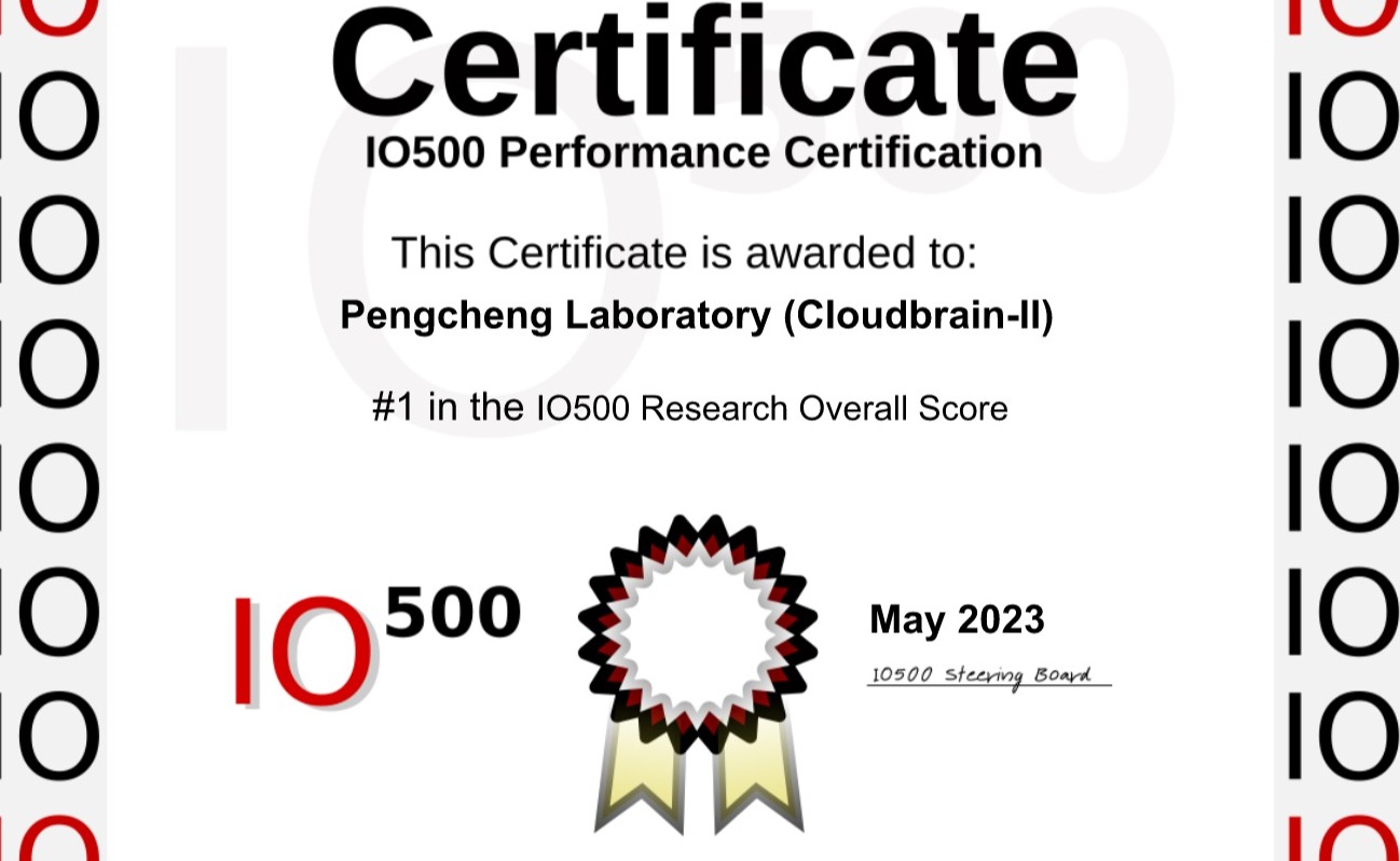 5月24日,国际超级计算大会(ISC23)发布新一期国际IO500排行榜,由计算机系与鹏城实验室研制开发的“鹏城云脑II”存储系统夺得超算存储500强(IO500)榜单全球第一
