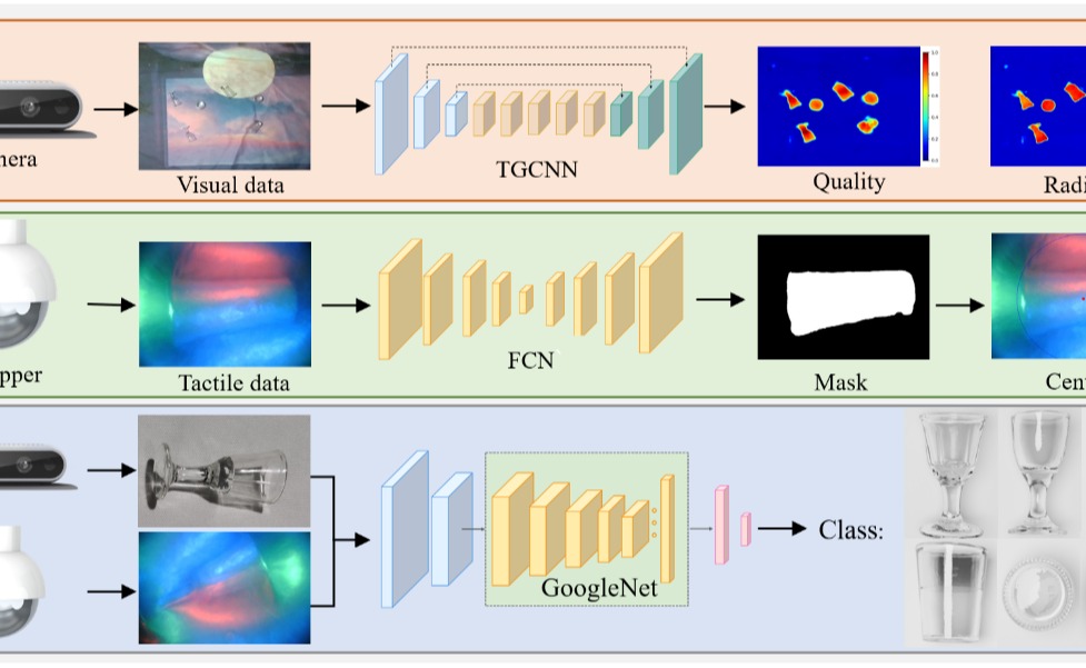 近日,深圳国际研究生院丁文伯副教授的智能感知与机器人(Smart Sensing and Robotics, SSR)课题组与合作者提出了一个基于视触融合的透明物体抓取框架,该框架模仿了人在低可见度情况下抓取物体的动作,并利用视触融合来实现透明物体的检测和抓取。该方法...