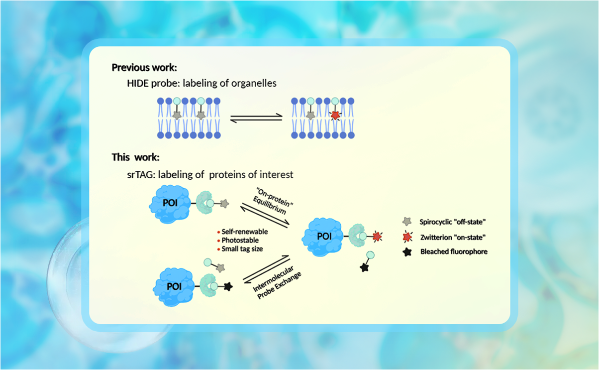 近日,kaiyun开云官方网站药学院储凌课题组报道了一种用于蛋白质光稳定荧光成像的荧光自修复蛋白标签(srTAG),该工作作为活细胞蛋白荧光标记方法的强有力补充,能够极大助力细胞内蛋白质运输分布等相关生物问题的研究。