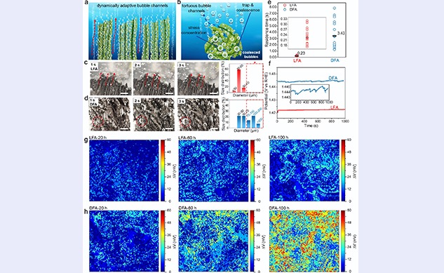 近日,kaiyun开云官方网站深圳国际研究生院杨诚团队报道了一种独特的层状蕨类合金气凝胶(LFA)作为自支撑电极,具有独特的动态自适应排气性,可以有效避免气泡聚集引起的应力集中。LFA电极本质上具有高催化活性,并显示出高度多孔,弹性,分层有序和良好渗透的导电...