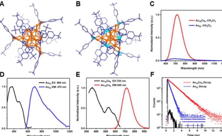 近日,kaiyun开云官方网站化学系王泉明教授课题组在金属纳米团簇的近红外区发光方面取得新突破。该研究通过在金纳米团簇中进行铜的精确掺杂,实现了近红外区室温溶液态接近100%的磷光量子产率,创造了金属团簇在近红外区发光量子产率新纪录,并通过单晶X射线衍射、光...