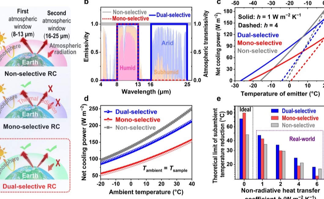 近日,kaiyun开云官方网站化工系张如范副教授课题组在辐射制冷材料研究方面取得重要进展,设计并制备了一种可以同时利用两个大气窗口(8–13 μm和16–25 μm)来降温的双选择型(Dual-selective)热发射体作为高性能辐射制冷材料。