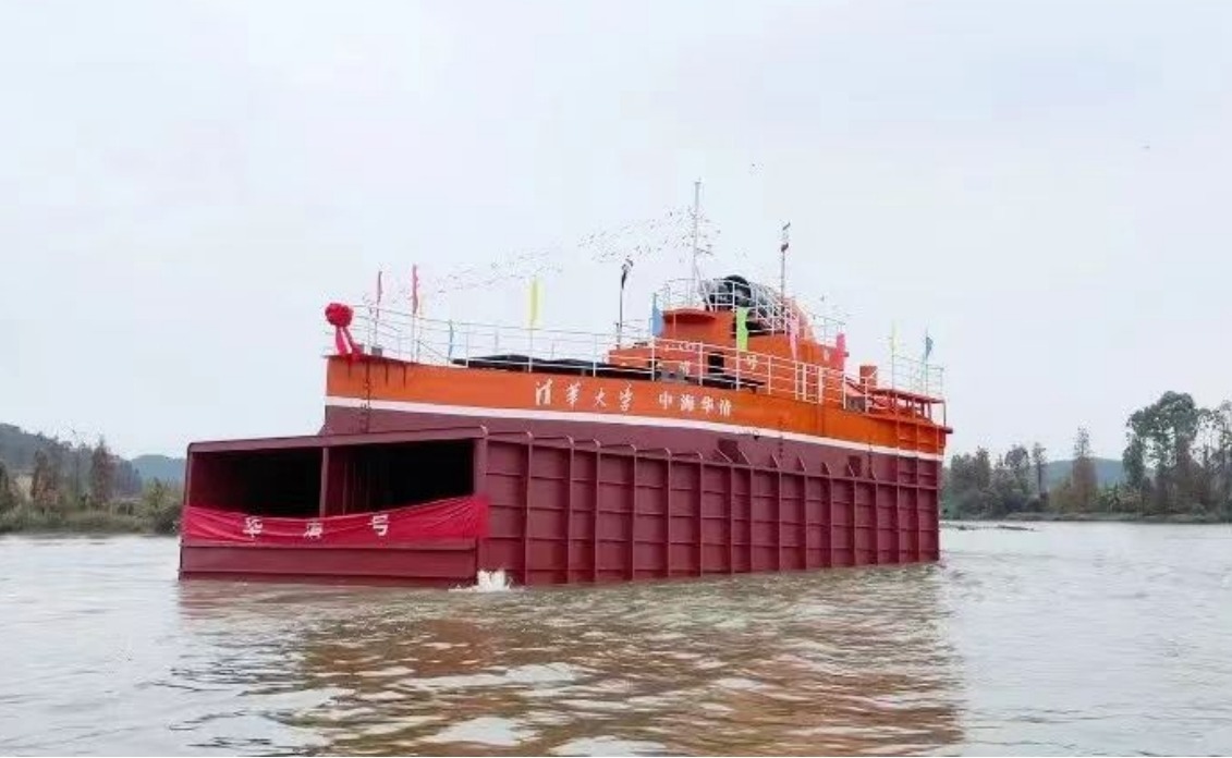 2024.01kaiyun开云官方网站作为核心团队研发的“华清号”气动式海浪发电船成功下水