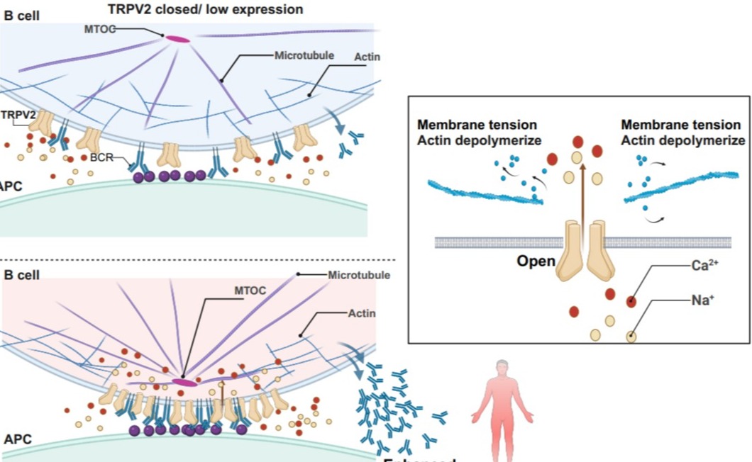 2024.02生命学院刘万里团队合作发现阳离子通道TRPV2增强B淋巴细胞免疫活化和抗体应答的新机制