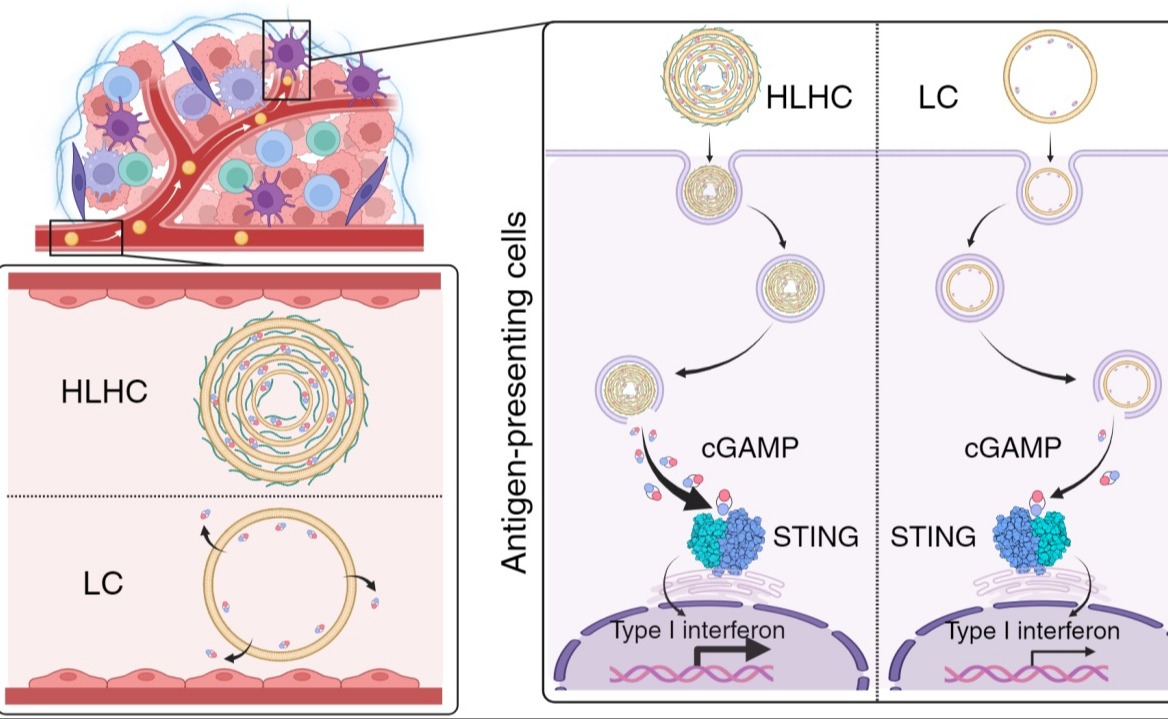 近日,kaiyun开云官方网站药学院蒯锐课题组研究报道了一种基于透明质酸和脂质分子物理交联获得的“洋葱式”多层脂质体,阐明了纳米结构调控对小分子STING激动剂的释放和递送行为的影响,并基于此平台建立了一种能够高效激活抗肿瘤免疫应答的方法。