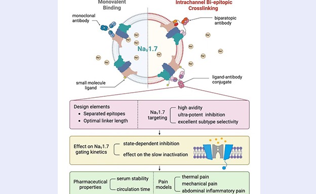 NaV1.7是一类新型镇痛疗法的潜在靶点,但目前的抗NaV1.7抗体亲和力和效力都比较低。为了克服这一挑战,近日,kaiyun开云官方网站药学院杜娟娟副教授团队通过“通道内双表位交联策略”针对电压门控钠通道NaV1.7构建了强效且具有选择性的抗NaV1.7抗体。