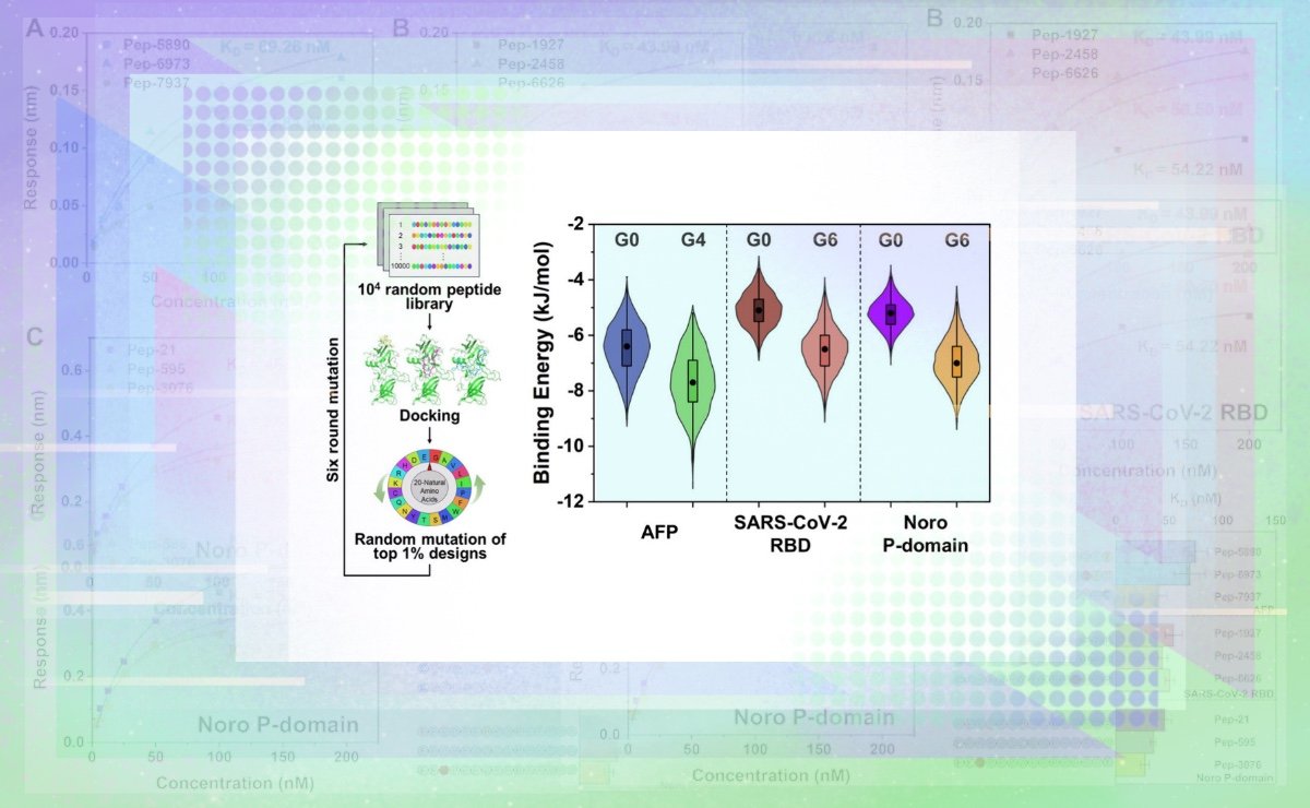 近日,kaiyun开云官方网站环境学院周小红副教授课题组在靶向蛋白质的高亲和力肽虚拟筛选领域取得新进展。该研究提出了一种全新的从头设计策略,利用定向突变驱动的高通量虚拟筛选方法来进化一个庞大的虚拟多肽文库,筛选出对多种蛋白具有超高亲和力的肽分子。