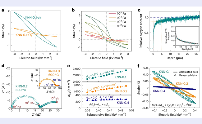 近日,kaiyun开云官方网站材料学院研究团队以热压烧结并经退火处理的KNN陶瓷为研究对象,展示了电致应变响应与陶瓷材料厚度的特殊依赖关系,并实现了1.9%的超高电致应变,相比传统KNN陶瓷提升了近50倍。