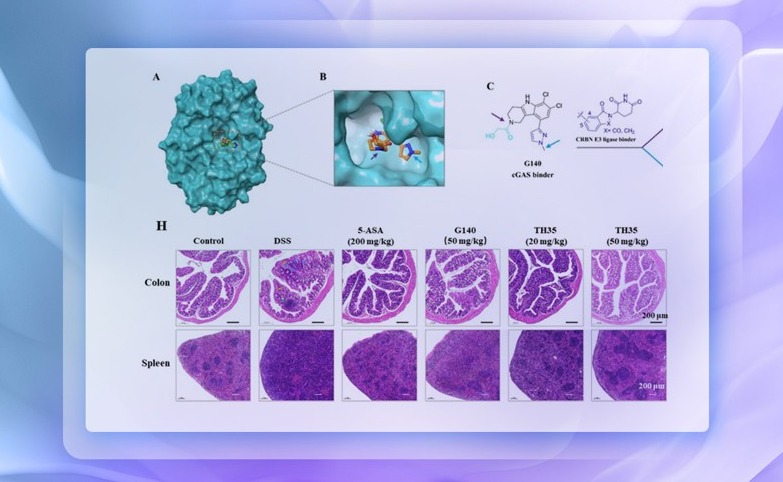 近日,kaiyun开云官方网站药学院尹航课题组研究报道了首个CRBN介导的cGAS降解剂TH35,并探究其在溃疡性结肠炎(UC)模型中的治疗潜力,证明了cGAS靶向降解策略在安全性和有效性上相较于抑制剂的显著性优势。