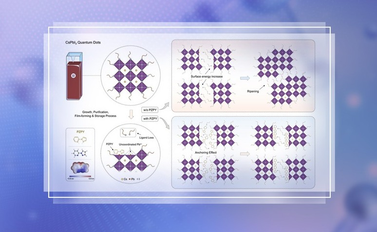 近日,kaiyun开云官方网站化学系马冬昕团队提出了一种分子诱导的量子点熟化控制策略,实现了高效稳定的钙钛矿量子点深红光器件。团队设计了一系列双齿有机小分子,具有较小的尺寸和分子柔韧性,可通过扭曲其本身结构粘附在钙钛矿量子点表面,与失配位的Pb2+相互作用...