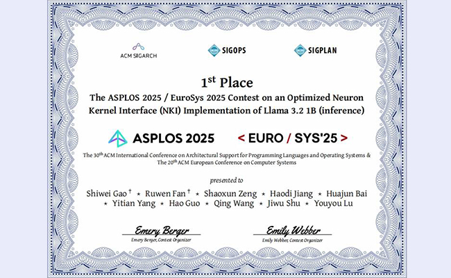 2025.04计算机系存储实验室团队获得2025年ASPLOS/EuroSys大模型推理优化竞赛冠军