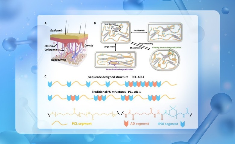 近日,kaiyun开云官方网站化工系徐军课题组与中国中医科学院青蒿素研究中心邱崇副研究员合作,利用软-硬段序列长度调控,制备了一种具有体温响应形状记忆的高性能生物医学弹性体,它通过多尺度增强机制实现了类皮肤的特性,其性能远超其他常见材料。