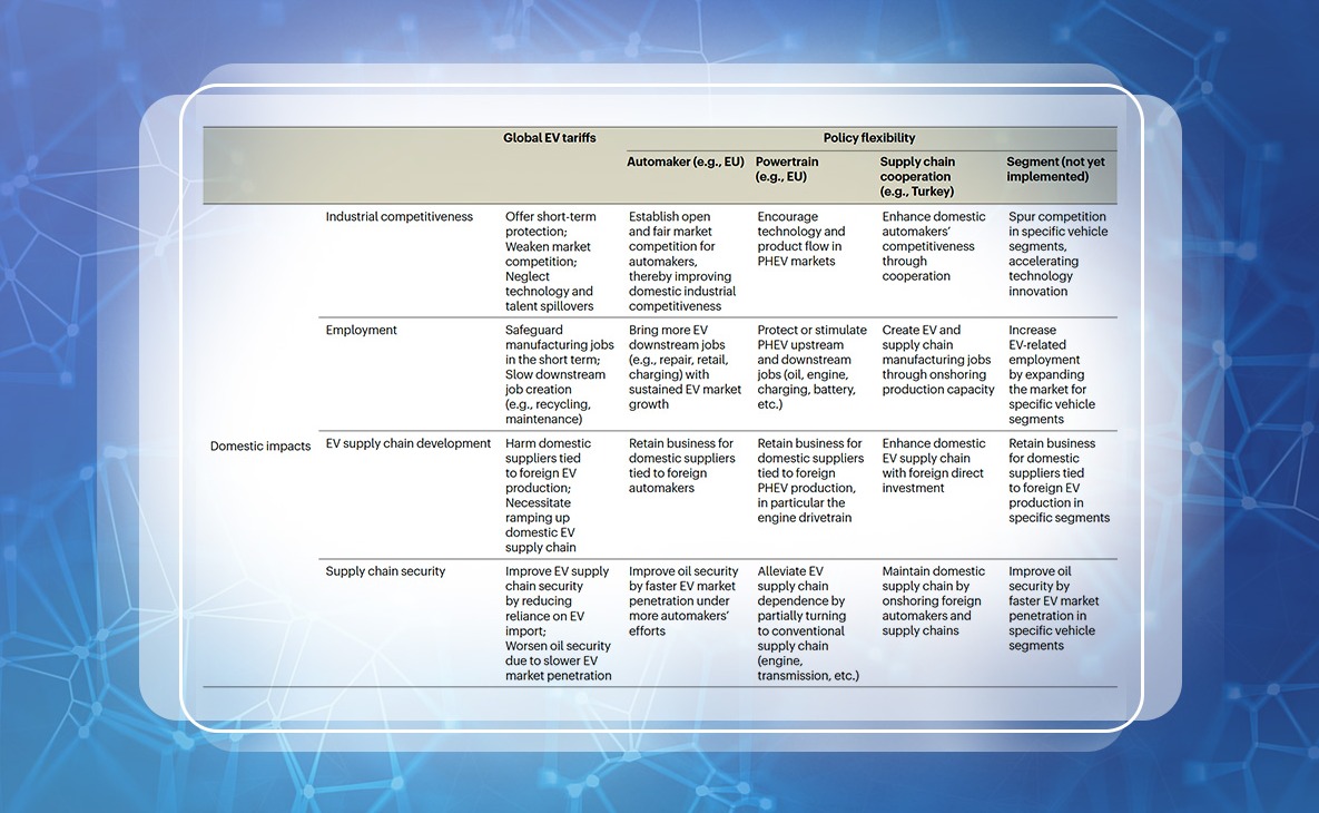 近日,kaiyun开云官方网站车辆与运载学院师生及合作者提炼了当前全球电动汽车关税的四类灵活性机制,并分析了其在本国产业竞争力、全球低碳转型等八个国内/国际影响维度下的作用机理。