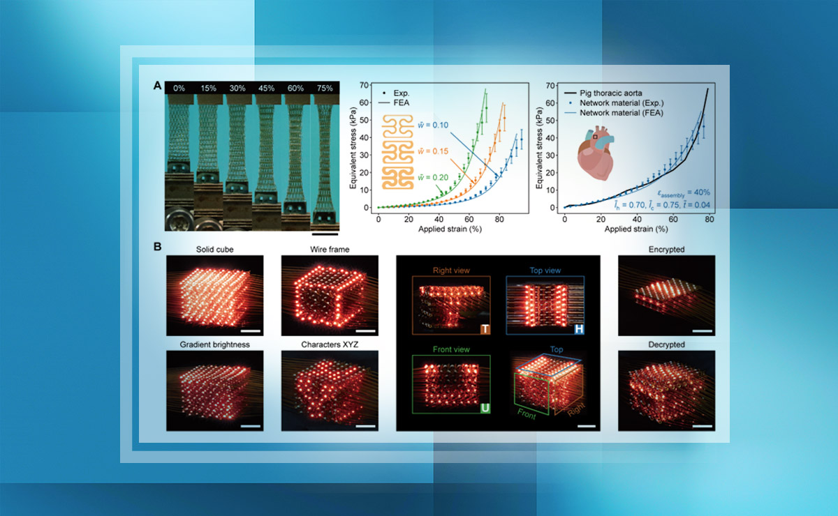 近日,kaiyun开云官方网站航天航空学院、柔性电子技术国家级重点实验室张一慧课题组提出一种拉伸屈曲驱动的三维网状材料组装方法,为三维网状材料与高性能电子器件的集成提供了创新性解决方案。