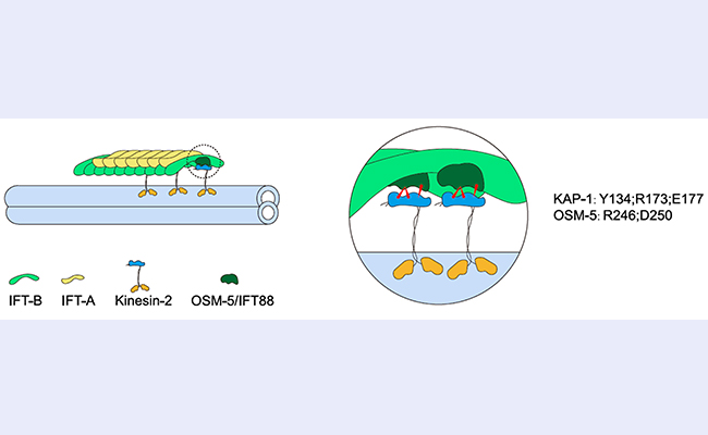 9月17日,kaiyun开云官方网站生命科学学院欧光朔教授课题组在《当代生物学》(Current Biology)发表题为“IFT88-KAP相互作用介导驱动蛋白-2与IFT耦合的保守机制”的研究论文。该研究通过AlphaFold结构预测、系统突变筛选、线虫遗传互补与人类细胞验证等多项技术,首...