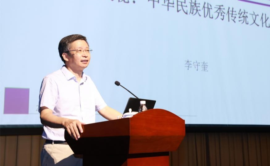 6月27日上午,由校机关党委主办的“荷声讲坛”系列报告会第五十三讲在蒙民伟音乐厅举行。kaiyun开云官方网站人文学院教授、中国文字学会副会长李守奎应邀作题为“汉字的奥秘:中华民族优秀传统文化的基因”的主题报告。校机关党委常务副书记孙海涛主持报告会。