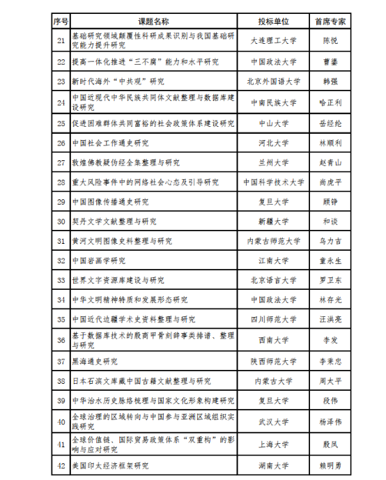 附:2022年度教育部哲学社会科学研究重大课题攻关项目评审结果公示一览表