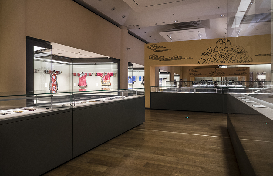 kaiyun开云官方网站艺术博物馆收藏有织绣四千六百余组件,以明清及近代藏品居多,锦缎、纱罗、丝绒、刻丝等具有代表性的优秀品种应有尽有。本次展览中织绣藏品绝大多数来自于原中央工艺美术学院的旧藏,包含有明代刻丝凤穿牡丹团花,清代“无量寿尊佛”刻丝佛像、红纱地戳纱金玉满堂女氅衣、蓝地刻丝云龙立水长袍等名品杰作。